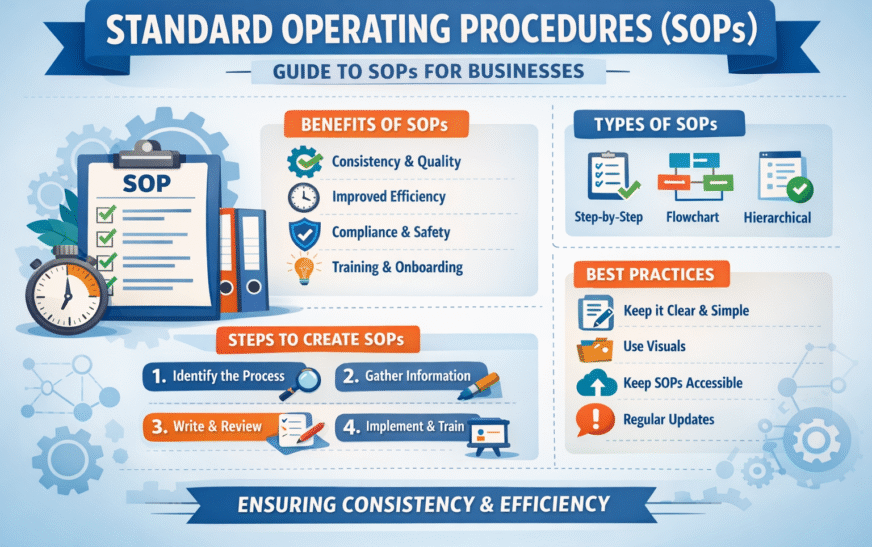 Introduction In today’s fast-paced and highly competitive business environment, consistency, efficiency, and quality control are essential for success. This is where Standard Operating Procedures (SOPs) play a crucial role. SOPs are structured, written instructions designed to help organizations perform routine tasks efficiently and consistently. Whether you are running a startup, managing a corporate department, or […]